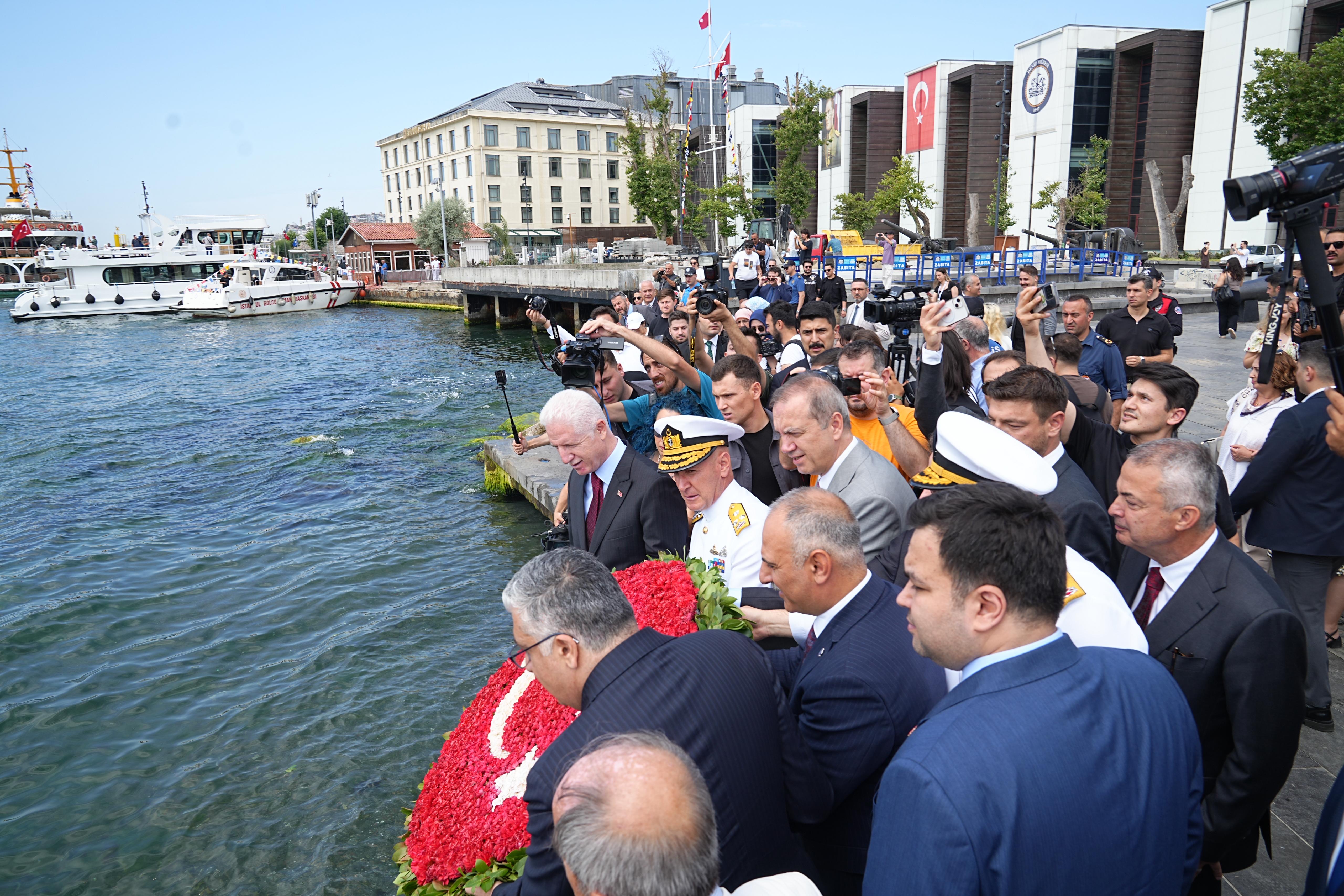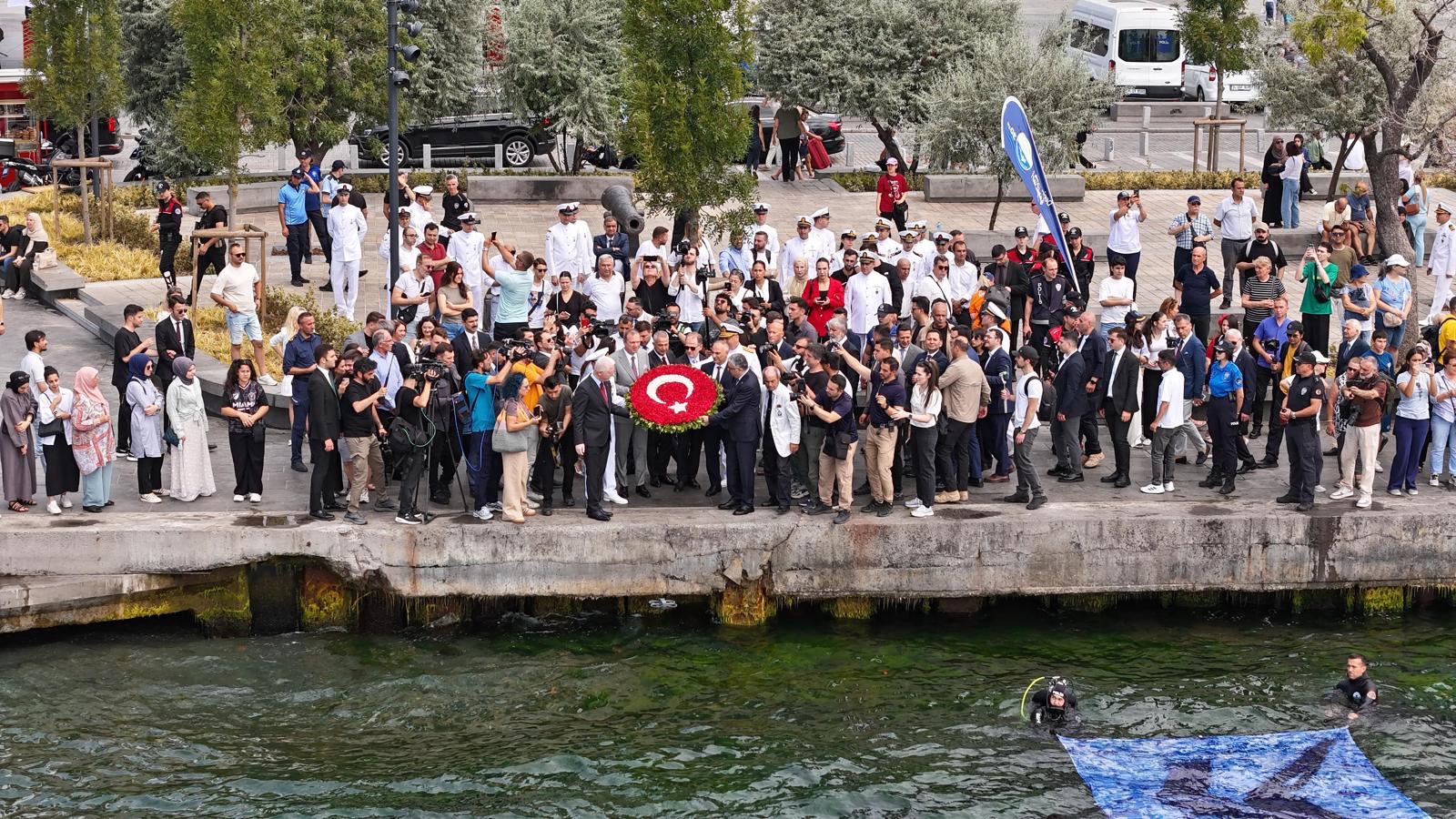 Tören, Deniz Şehitleri için denize çelenk bırakılması ve su gösterisinin ardından sona erdi.